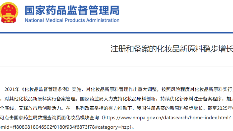 注冊(cè)和備案的化妝品新原料穩(wěn)步增長(zhǎng)