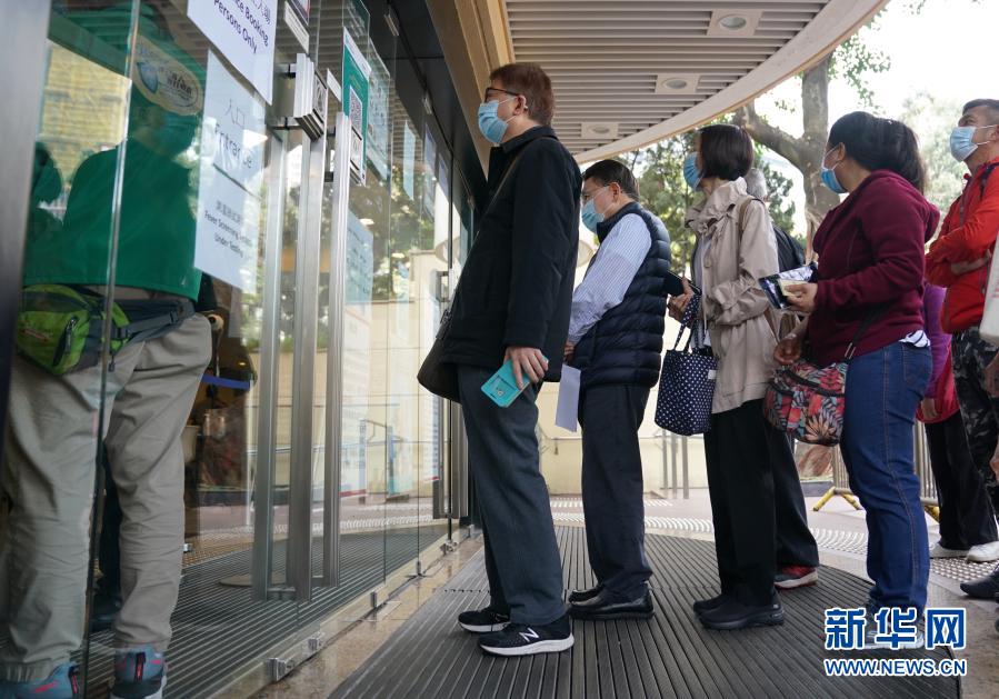 2月26日,在位于香港中央圖書館的社區(qū)疫苗接種中心,市民在入口處排隊(duì)。新華社記者 王申 攝