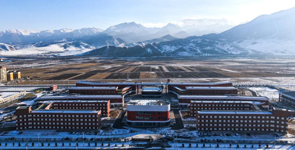 这是位于青海省海北藏族自治州门源回族自治县,由山东省和中粮集团援建的浩门镇高级中学(12月24日摄,无人机照片)。