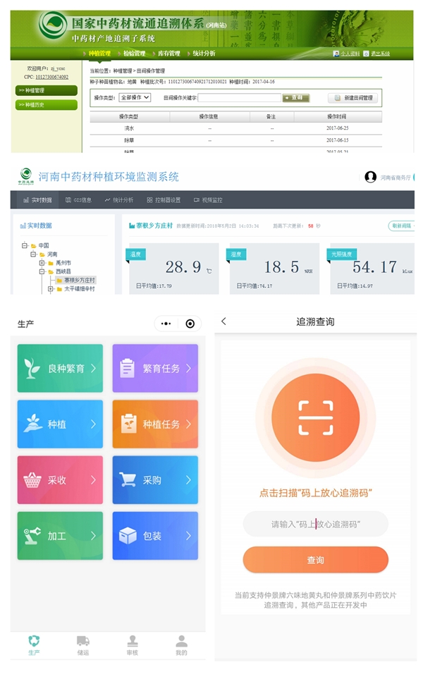 依托國家中藥材流通追溯體系、河南中藥材種植環(huán)境監(jiān)測系統(tǒng)、宛西制藥ERP信息系統(tǒng),企業(yè)建成中藥材及中成藥生產(chǎn)流通可追溯體系,實現(xiàn)從基地藥材、中藥飲片、生產(chǎn)過程、質(zhì)量檢測、市場流通全流程的業(yè)務管理和質(zhì)量溯源管理。通過機制創(chuàng)新、優(yōu)化流程,實現(xiàn)統(tǒng)一管理,滿足強化企業(yè)質(zhì)量管控。