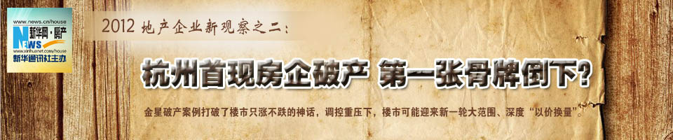 一家名不見經(jīng)傳的房地產(chǎn)公司——杭州金星房地產(chǎn)開發(fā)有限公司突然申請破產(chǎn),3月30日杭州市余杭區(qū)法院受理金星房地產(chǎn)破產(chǎn)案,該公司也成為本輪房地產(chǎn)調(diào)控開始以來首家申請破產(chǎn)的房企。據(jù)了解,余杭區(qū)法院將按照司法程序?qū)ζ溥M行資產(chǎn)清算;當(dāng)?shù)卣惨呀?jīng)開始善后工作。金星房地產(chǎn)為何會借下如此巨款?資金又流向何處?中江控股董事長俞中江在電話中并沒有向中國證券報記者作出明確解釋。 …[詳細(xì)]