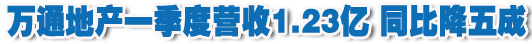 地產(chǎn)“淡定哥”一季度不再淡定,凈利潤出現(xiàn)虧損1860萬元。對于住宅項目主要以中高端為主的萬通地產(chǎn)而言,2012年的壓力依然很大。據(jù)了解,萬通目前在內(nèi)地的住宅產(chǎn)品主要位于北京及周邊地區(qū)、天津、成都等地,均是中高端產(chǎn)品,是調(diào)控的“重災(zāi)區(qū)”。如去年年中開盤的萬通天竺家園就被迫限價,影響了預(yù)期利潤。而臺北萬通項目尚未形成利潤。 …[詳細] |