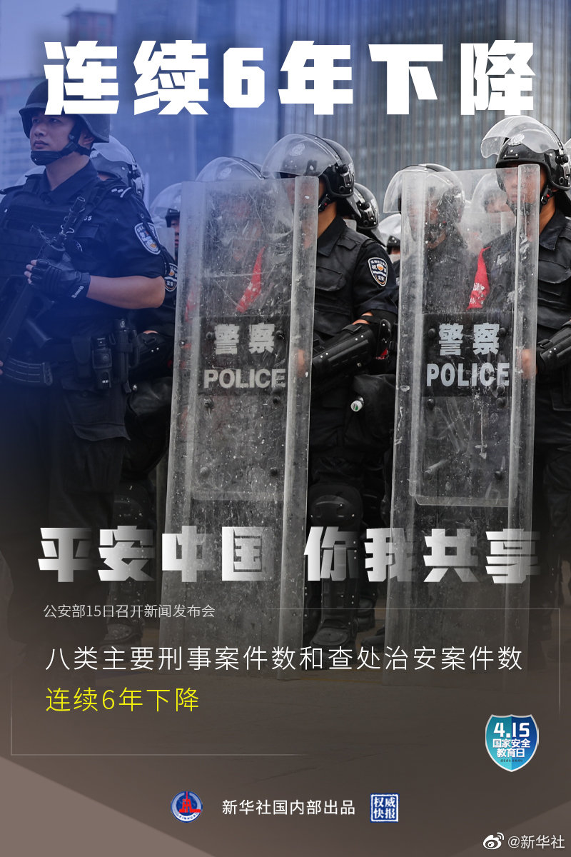 4月15日是第六個全民國家安全教育日,公安部15日召開新聞發(fā)布會介紹:2020年全國群眾安全感為98.4%,全國居民對社會治安滿意度達83.6%。截至2020年,全國刑事案件立案總量連續(xù)5年下降,八類主要刑事案件數(shù)和查處治安案件數(shù)連續(xù)6年下降。(記者熊豐,海報設(shè)計張晨光)