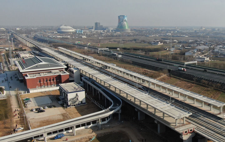 2025年12月26日,从延安开往西安的C9339次列车驶过富平南站(无人机照片)。新华社记者 李一博 摄