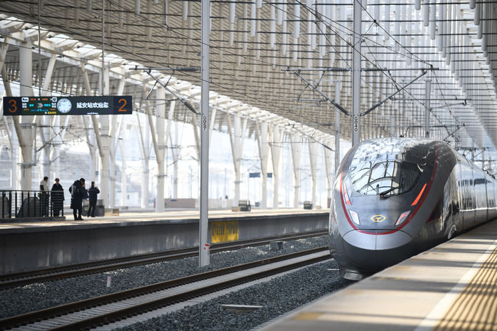 冬日暖阳,洒向延安火车站的站台。26日10时许,“复兴号”智能动车组列车驶出站台,向着关中平原飞驰而去,萦绕在老区几代人心中的高铁梦照进现实。