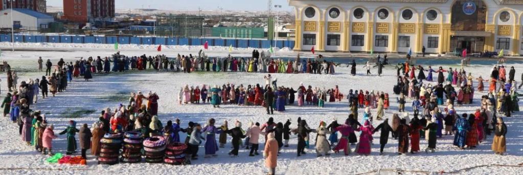 新巴尔虎右旗第一小学的校园冰雪那达慕开幕式。