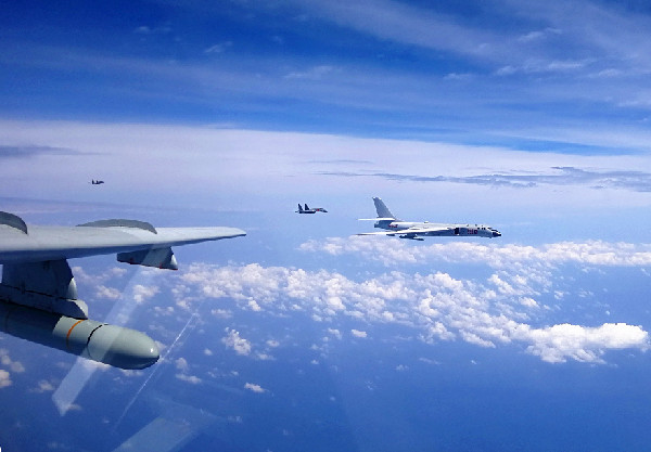??? 4月19日,中國空軍轟-6K等多型戰(zhàn)機執(zhí)行“繞島巡航”任務(wù)。中國空軍4月21日向海內(nèi)外發(fā)布多語種宣傳片《戰(zhàn)神繞島新航跡》??哲姂?zhàn)神轟-6K等戰(zhàn)機近日連續(xù)3天“繞島巡航”的震撼畫面,在宣傳片中集中展現(xiàn),彰顯了空軍飛行員維護國家主權(quán)和領(lǐng)土完整的意志能力。新華社發(fā)(秦軍 攝)