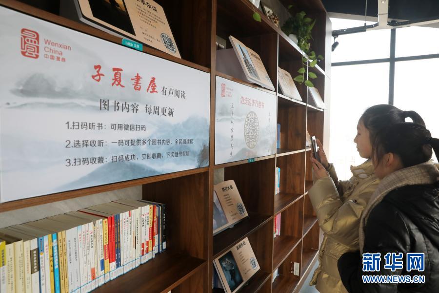 1月23日,在河南省焦作市溫縣子夏書屋,兩名中學生在掃描二維碼體驗有聲閱讀。