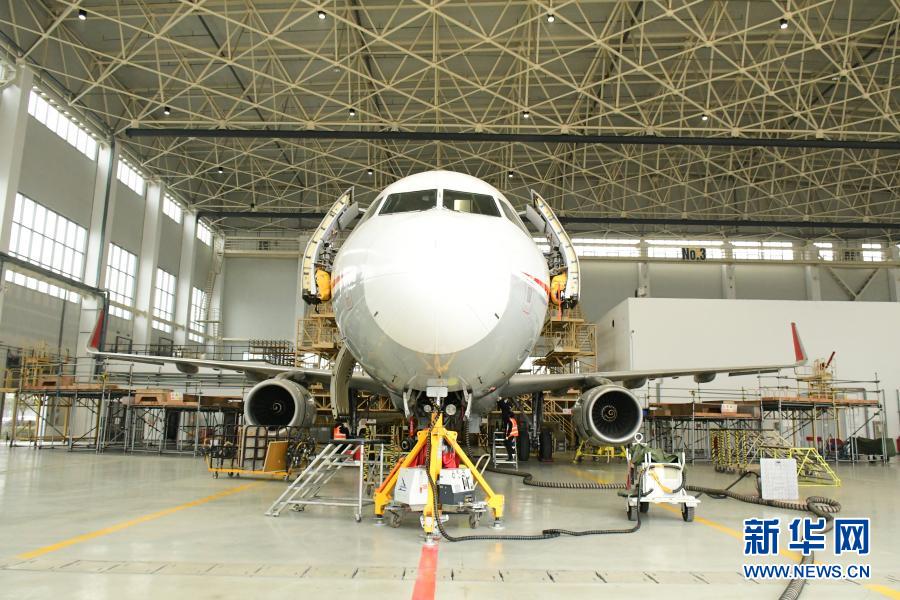 1月23日,在四川飛機(jī)維修工程有限公司機(jī)庫(kù)內(nèi),一架民航客機(jī)接受維護(hù)作業(yè)。