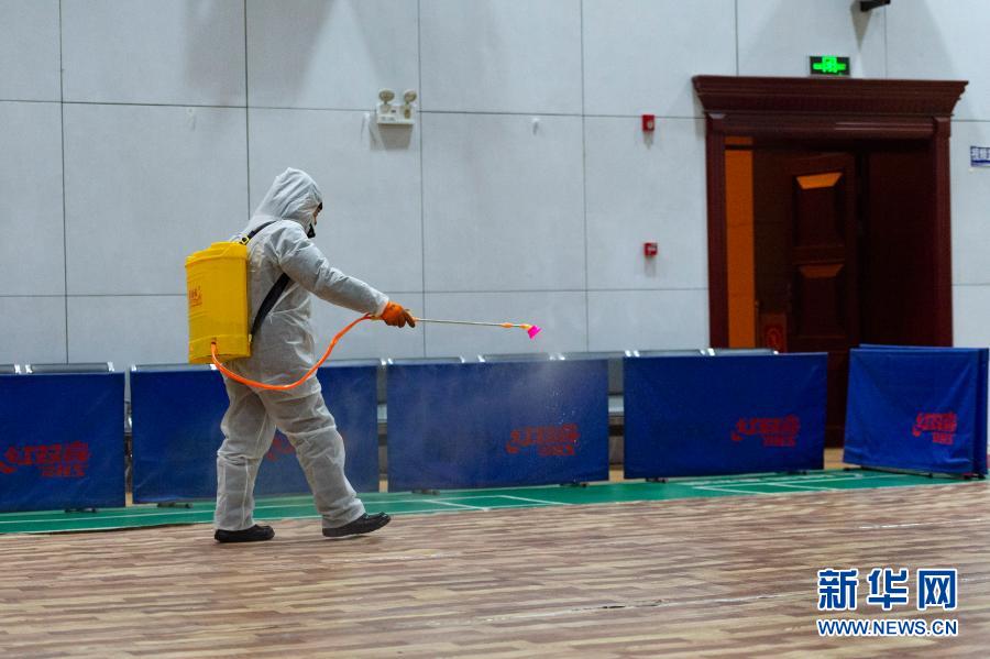 1月23日,工作人員在哈爾濱市兆麟社區(qū)核酸檢測點進行消殺。新華社記者 謝劍飛 攝