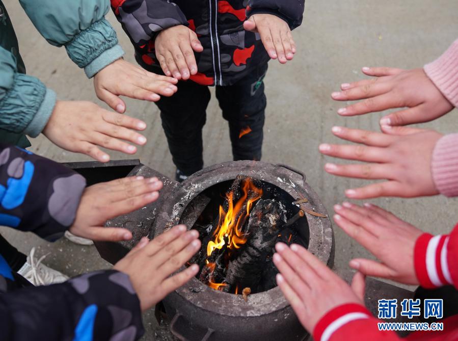 2月3日,王翩和學(xué)生們一起用炭爐取暖。新華社記者 胡晨歡 攝