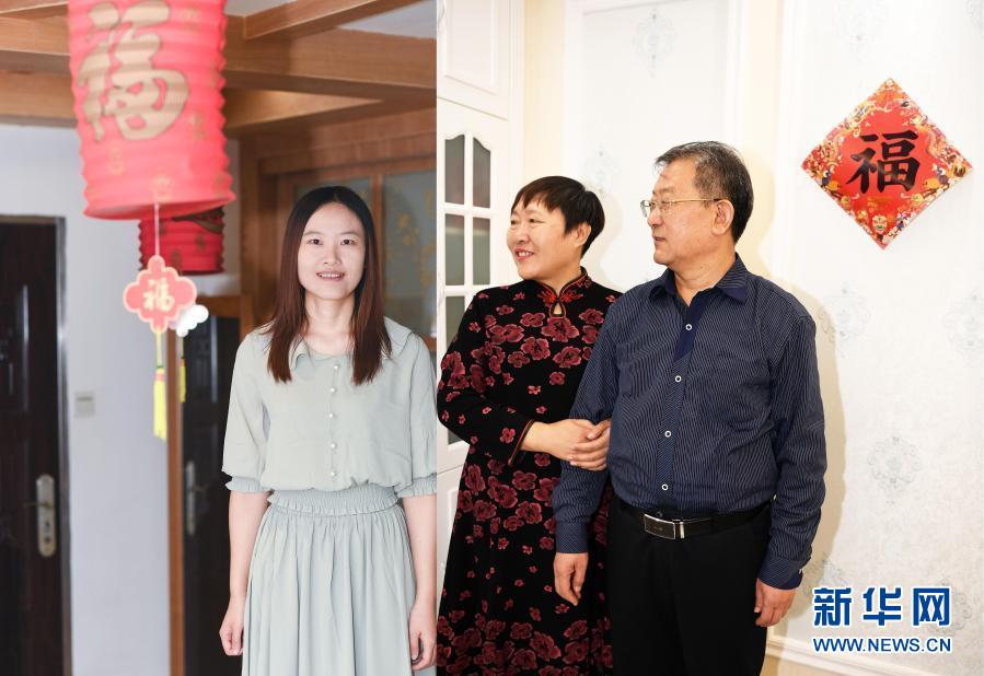 這是一張拼版的“全家?!闭掌?。左圖為“90后”助產士陳志昊在廣州的家中(2月6日,新華社記者鄧華攝);右圖為陳志昊的父親陳國謙(右)、母親龐麗在山東泰安的家中(2月8日,新華社記者王凱攝)。