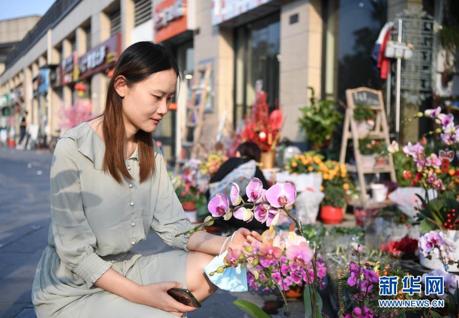 陳志昊在廣州荔灣區(qū)一處花店選購過年用的鮮花(2月6日攝)。