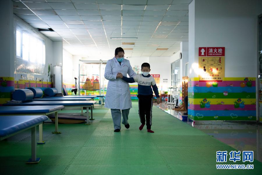 在哈爾濱博能中醫(yī)門診部,劉雨晴為腦癱兒童進(jìn)行康復(fù)訓(xùn)練(2月2日攝)。新華社記者 謝劍飛 攝