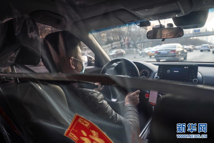 老家在湖北孝感的滴滴專車司機魏闖來開著專車行駛在北京街頭(2月9日攝)。今年,他選擇和妻子、孩子在京過年。