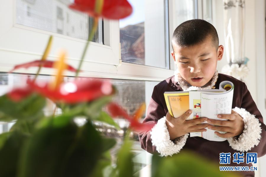 2月5日,在青海省海東市平安區(qū)三合鎮(zhèn)的易地搬遷集中安置區(qū),翻身村的一名小朋友在家中的陽(yáng)臺(tái)讀書。