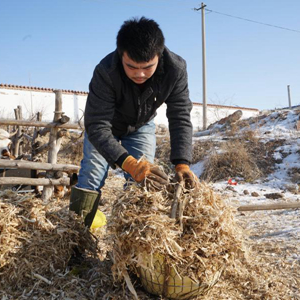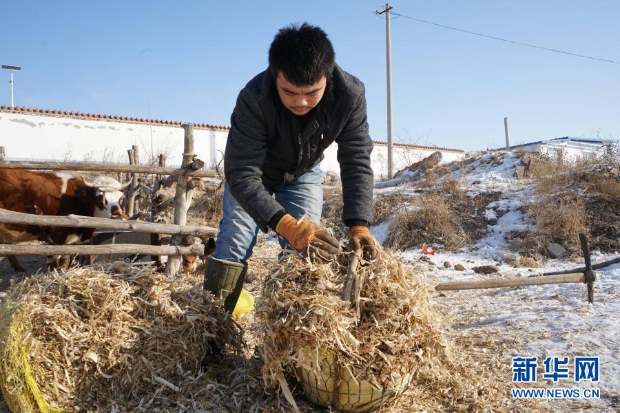 2月6日,包勝準(zhǔn)備喂牛的草料。新華社記者 侯維軼 攝