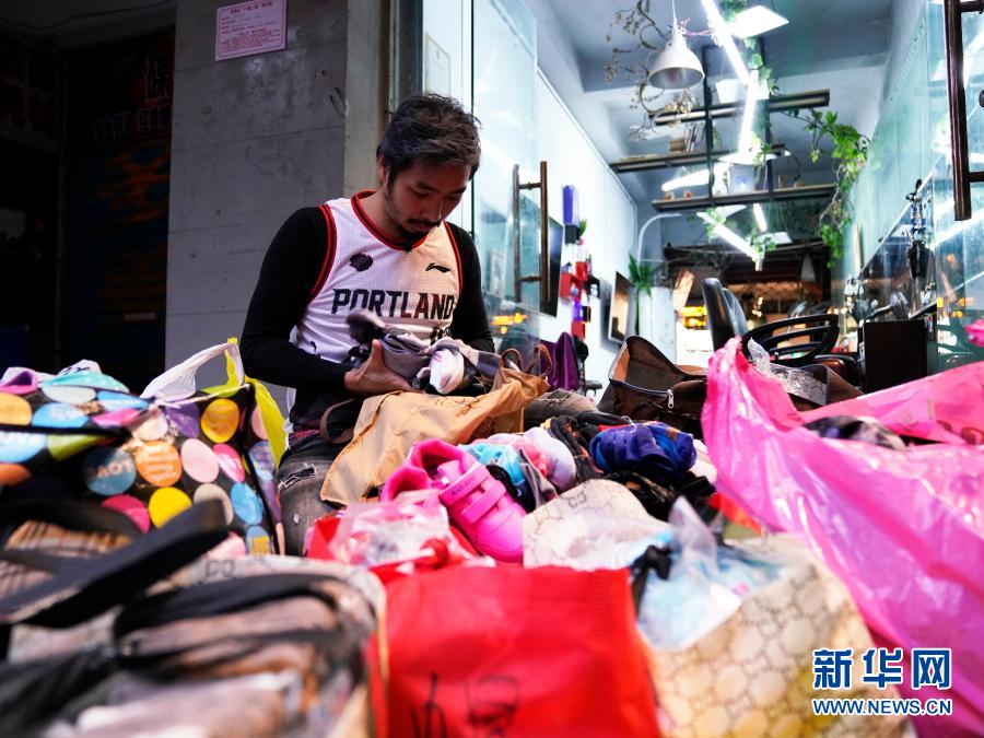 劉佳整理準備送給農(nóng)村留守兒童的愛心衣物(2月9日攝)。新華社記者 楊馳 攝