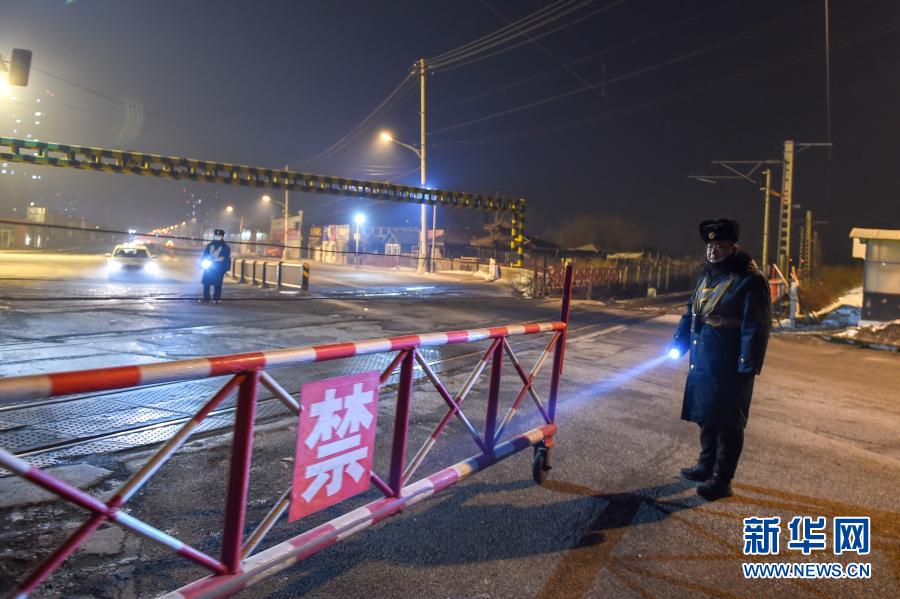 2月11日,道口員王波(右)、楊鵬在道口值守。