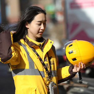 2月10日 ,美團(tuán)專送騎手小月月在送餐。新華社記者 楊青攝