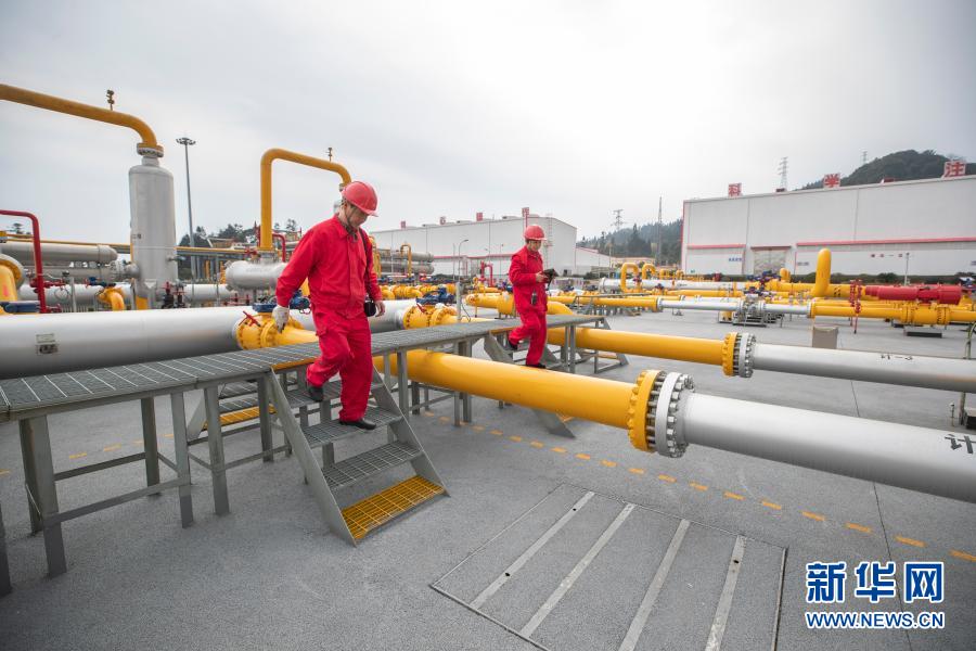 2月13日,在中國(guó)石油西南油氣田公司相國(guó)寺儲(chǔ)氣庫(kù),陳彪(左)、范琴在集輸區(qū)巡檢。