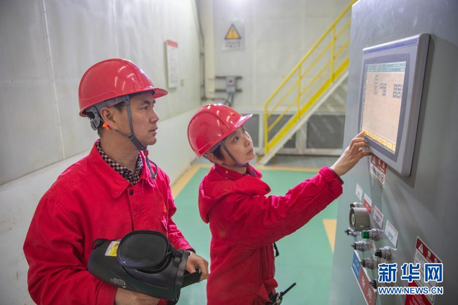 2月13日,在中國石油西南油氣田公司相國寺儲氣庫,陳彪(左)、范琴在巡檢壓縮區(qū)。