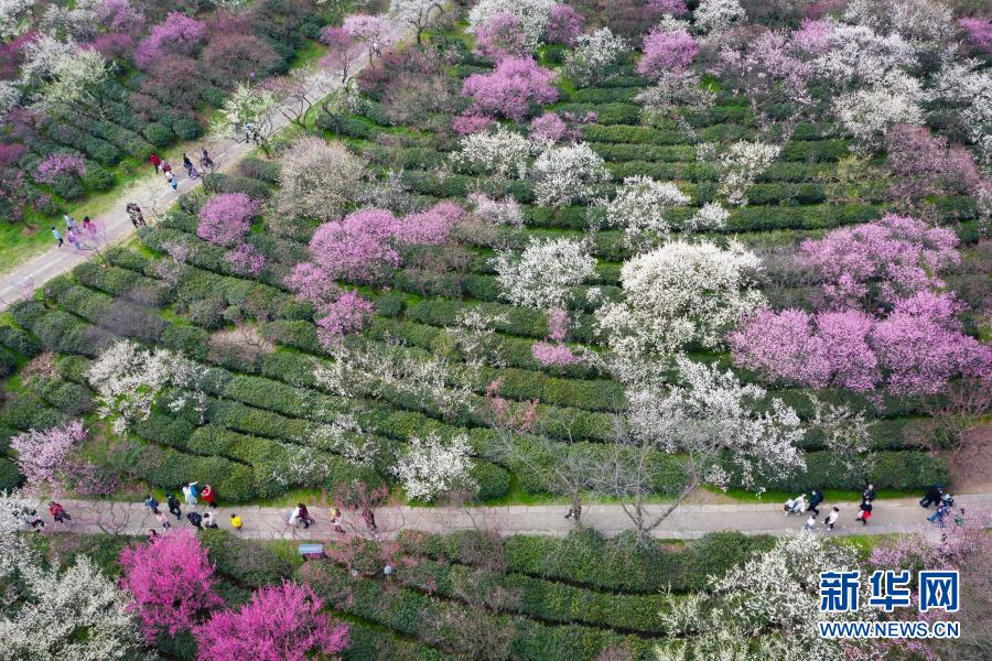 2月14日,游人在南京梅花山賞花(無(wú)人機(jī)照片)。新華社發(fā)(蘇陽(yáng) 攝)