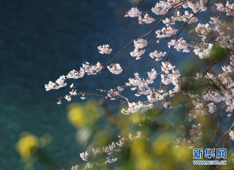 湖南張家界武陵源景區(qū)十里畫廊的櫻花競相綻放(2月14日攝)。新華社發(fā)(吳勇兵 攝)