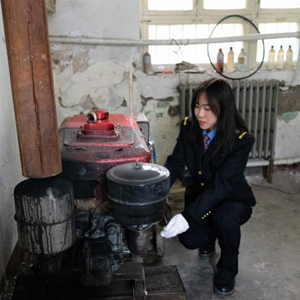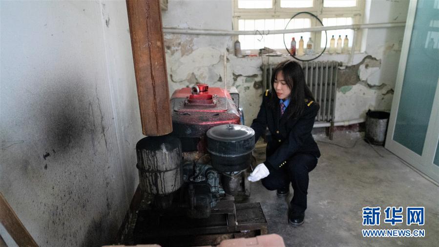孫家寨站車站值班員李二鑫在使用發(fā)電機(jī)(2月10日攝)。新華社記者 嚴(yán)賦憬 攝
