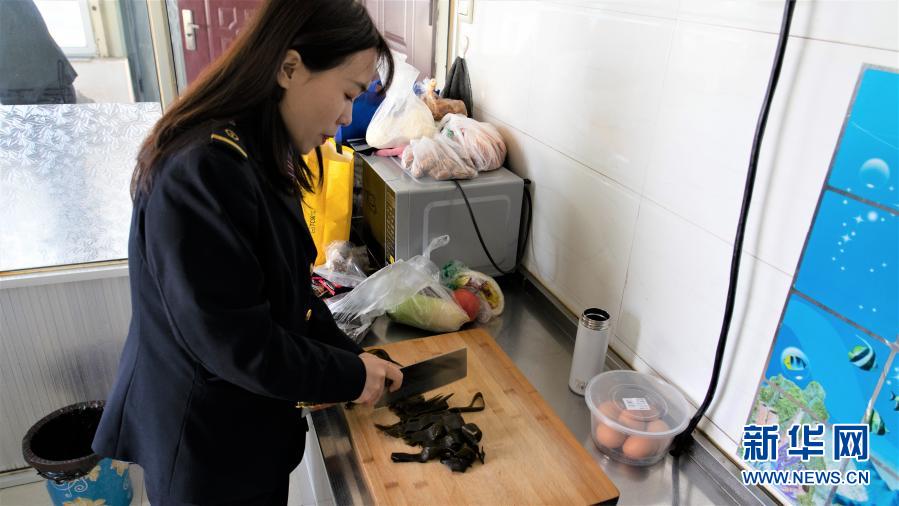 孫家寨站車(chē)站值班員李二鑫為大家準(zhǔn)備午餐(2月10日攝)。新華社記者 嚴(yán)賦憬 攝