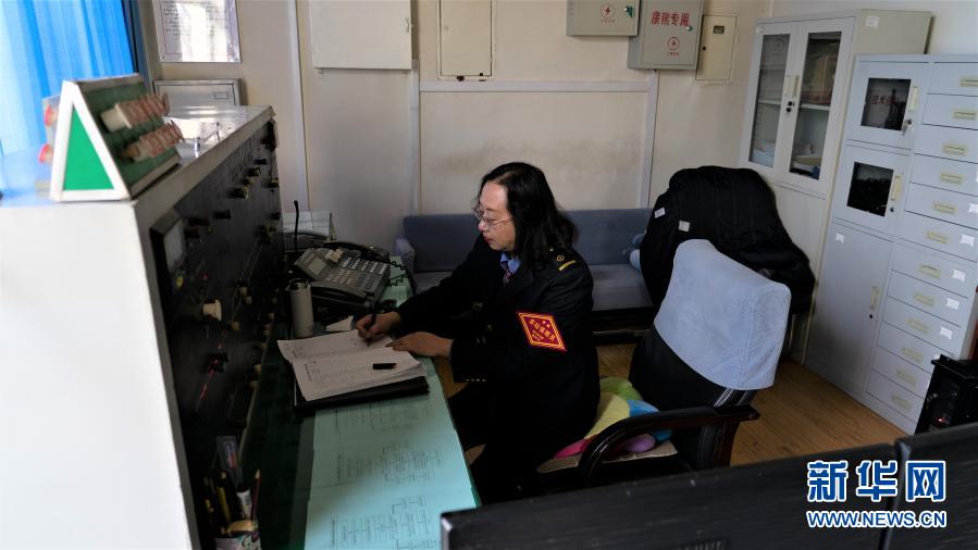 孫家寨站車站值班員徐建在記錄鐵路通行狀況(2月10日攝)。新華社記者 嚴(yán)賦憬 攝