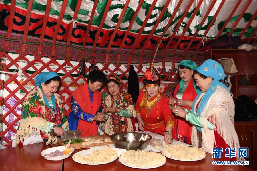 當(dāng)日,新疆塔城地區(qū)托里縣哈薩克民宿風(fēng)情自駕游基地的哈薩克氈房迎來民間社團(tuán)“小天鵝藝術(shù)團(tuán)”。團(tuán)員們平均年齡近70歲,來自不同民族,因?yàn)槟芨枭莆?,熱愛公益,被?dāng)?shù)厝朔Q為“愛心奶奶藝術(shù)團(tuán)”。她們相聚在此,用歌舞表達(dá)對(duì)新年的祝福和期待。