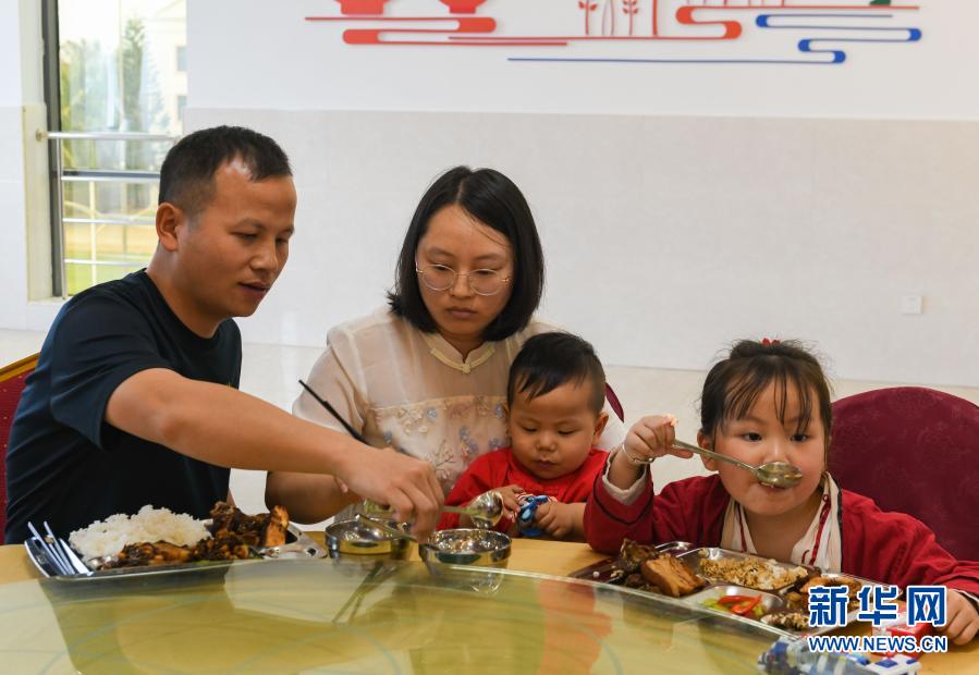 2月14日,在海南省三沙市永興島,傅建斌和家人在食堂用餐。新華社記者 周佳誼 攝