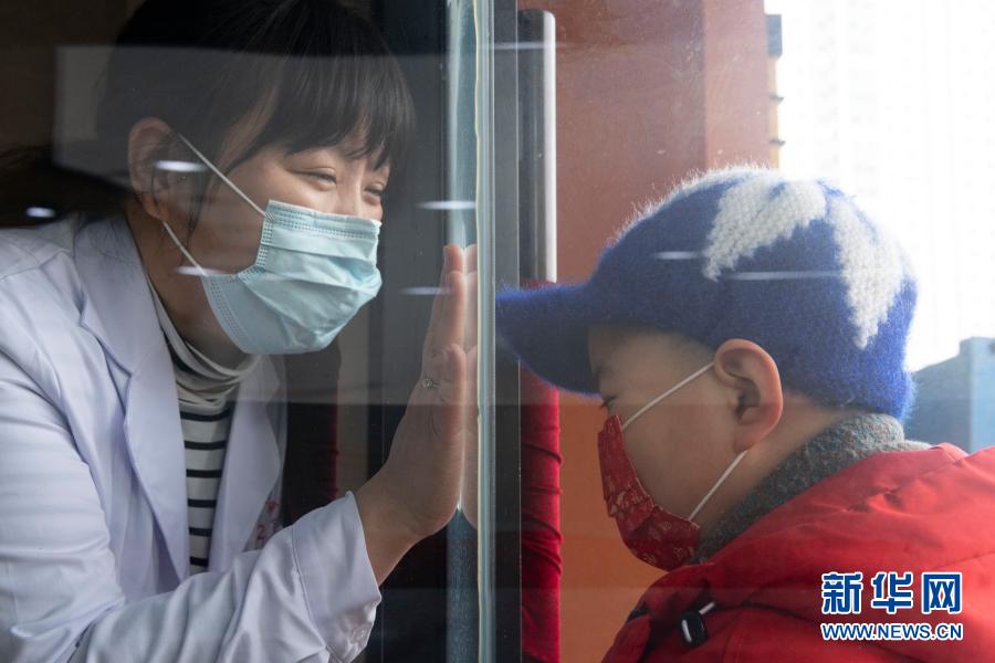 36歲的鄭瑩瑩是哈爾濱市道外區(qū)人民醫(yī)院的一名工作人員。2月1日至15日,她在道外區(qū)一處集中隔離點24小時值守,主要負責(zé)填寫報表、出入人員轉(zhuǎn)運聯(lián)絡(luò)等工作。這是2月11日除夕上午,鄭瑩瑩6歲的兒子來到隔離點看望媽媽,還給她帶來了一朵康乃馨。因疫情防控需要,鄭瑩瑩只能隔著賓館的玻璃門“摸摸”兒子。