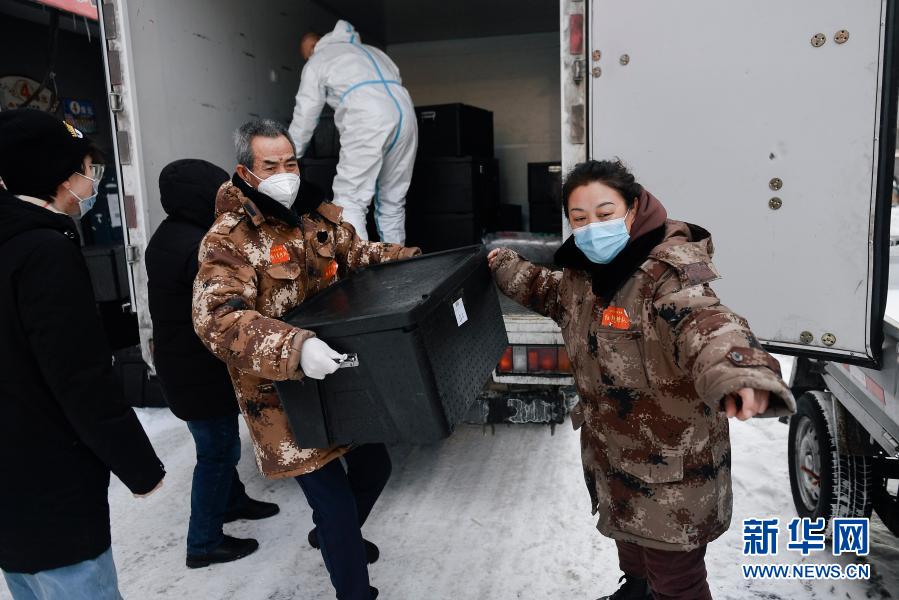 55歲的趙淑華,是吉林省通化市東昌區(qū)團(tuán)結(jié)街道文化社區(qū)副主任、網(wǎng)格長(zhǎng)。自1月12日通化發(fā)生疫情以來(lái),臨近退休的她毫不猶豫投身抗疫一線。小區(qū)巡邏、配合入戶核酸檢測(cè)、幫助居民排憂解難、保障卡點(diǎn)餐飲供給……為了防疫工作,她吃、住都在社區(qū),24小時(shí)待命,近一個(gè)月沒(méi)有回家。這也是東昌區(qū)800余名網(wǎng)格員一個(gè)月來(lái)的防疫工作常態(tài)。在這座不大的東北山城,他們用自己的付出構(gòu)筑了一個(gè)個(gè)基層“抗疫堡壘”。這是2月15日,趙淑華(右一)指揮社區(qū)工作人員和志愿者搬運(yùn)盒飯。