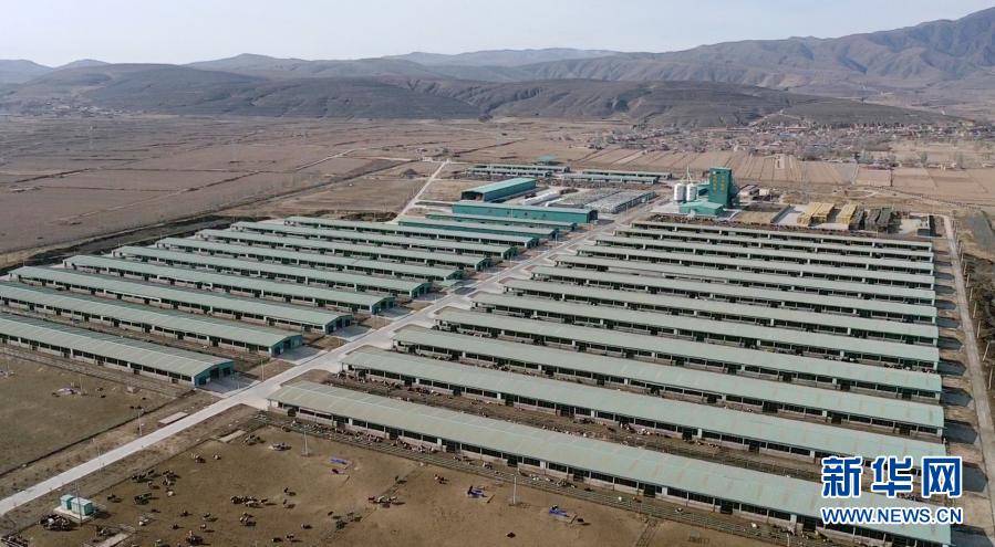 寧夏海原華潤農(nóng)業(yè)有限公司肉牛養(yǎng)殖基地(2021年1月7日攝,無人機(jī)照片)。新華社記者 王鵬 攝