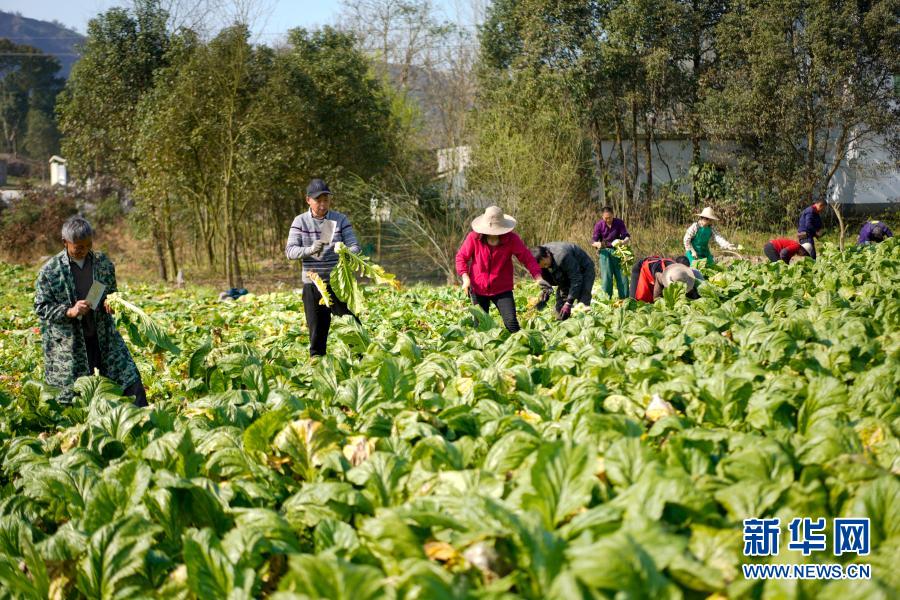 2月20日,在重慶市涪陵區(qū)江北街道,村民在田間收砍青菜頭。