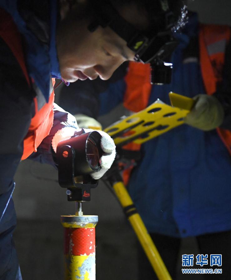 2月21日,鐵路工人在安裝檢查設(shè)備。新華社記者 張曼怡 攝