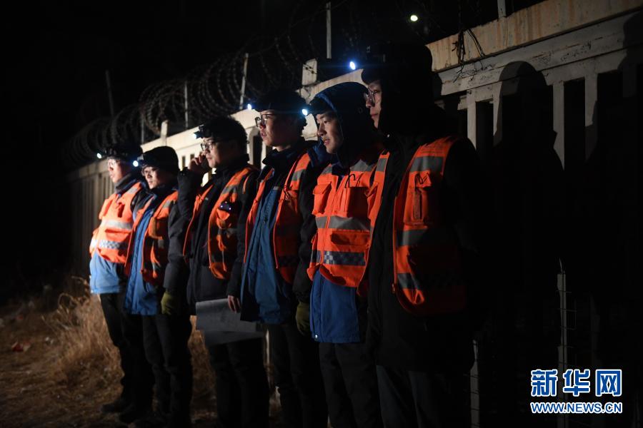 2月21日,夜幕下工人們集合準(zhǔn)備出發(fā)。新華社記者 張曼怡 攝