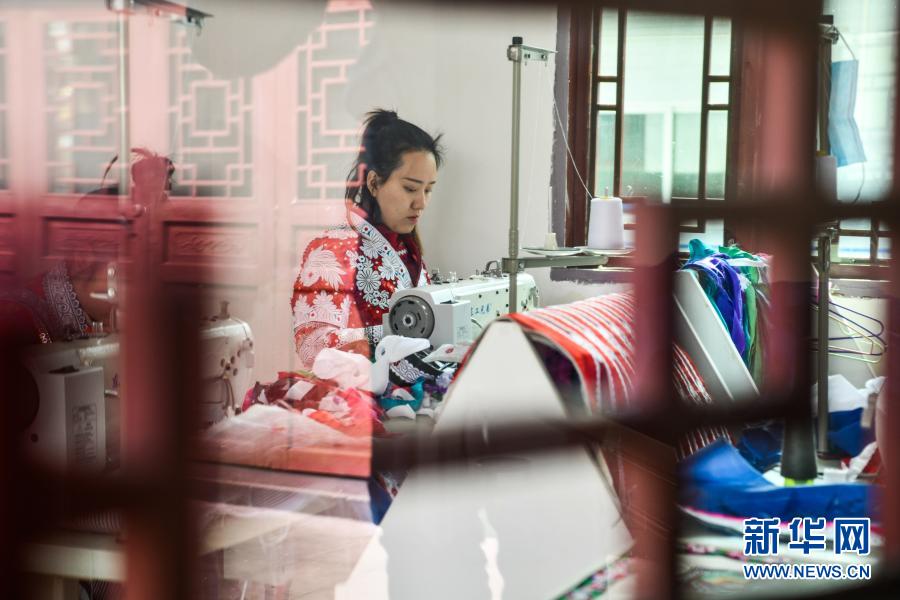 2月20日,在化屋村麻窩寨易地扶貧搬遷集中安置點(diǎn),苗族繡娘楊文麗在扶貧車間制作苗族服飾。2019年底,楊文麗和丈夫尤華忠創(chuàng)辦了蠟染刺繡扶貧車間,帶動(dòng)村里30余名村民到車間實(shí)現(xiàn)就業(yè)增收。她的新年心愿是希望把扶貧車間做大做好,帶動(dòng)周邊更多的鄉(xiāng)親一起致富。