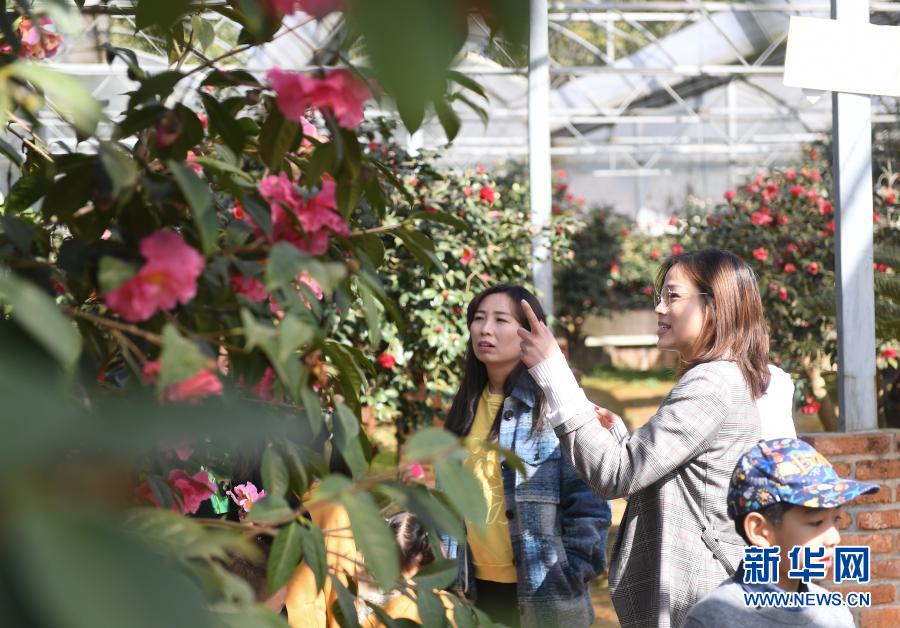 謝丞恩(中)帶領(lǐng)客人參觀農(nóng)場(chǎng)花園(2月20日攝)。