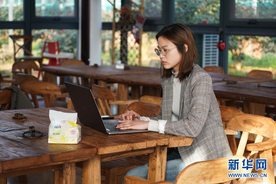 謝丞恩在網(wǎng)絡(luò)上推廣紅標(biāo)雞(2月20日攝)。新華社記者 季春鵬 攝