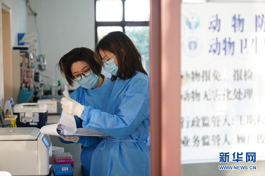 謝丞恩(右)在農(nóng)場(chǎng)實(shí)驗(yàn)室查看實(shí)驗(yàn)數(shù)據(jù)(2月20日攝)。新華社記者 季春鵬 攝