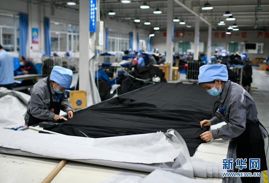 2月24日,寧夏同心縣中核(寧夏)同心防護(hù)科技有限公司扶貧車(chē)間的女工在進(jìn)行服裝加工。