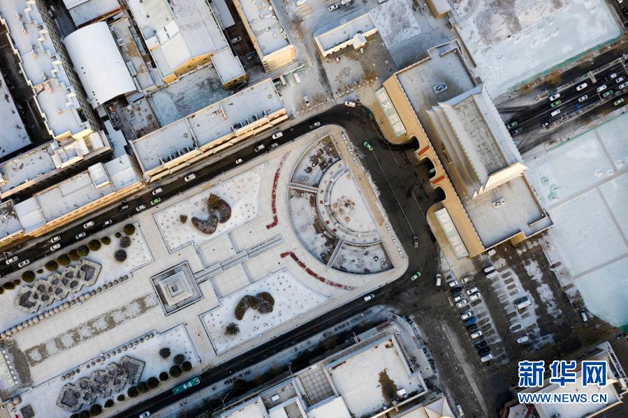 3月1日拍攝的雪后甘肅省武威市南城門廣場(無人機照片)。新華社發(fā)(姜愛平 攝)