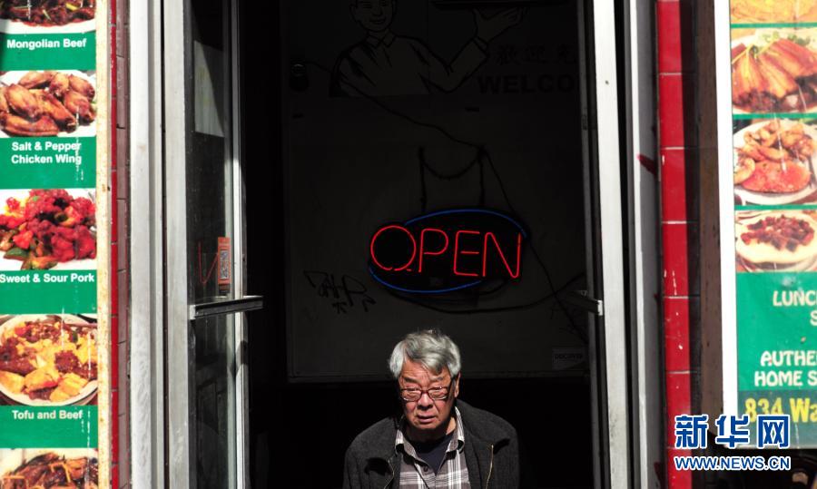 3月3日,一名男子從美國加利福尼亞州舊金山唐人街一家營業(yè)的餐館里走出。新華社記者 吳曉凌 攝
