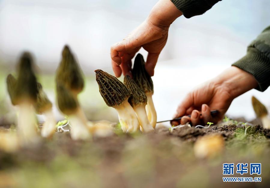3月20日,河北省唐山市漢沽管理區(qū)農(nóng)業(yè)總公司第九生產(chǎn)隊的農(nóng)民在大棚內(nèi)采收羊肚菌。