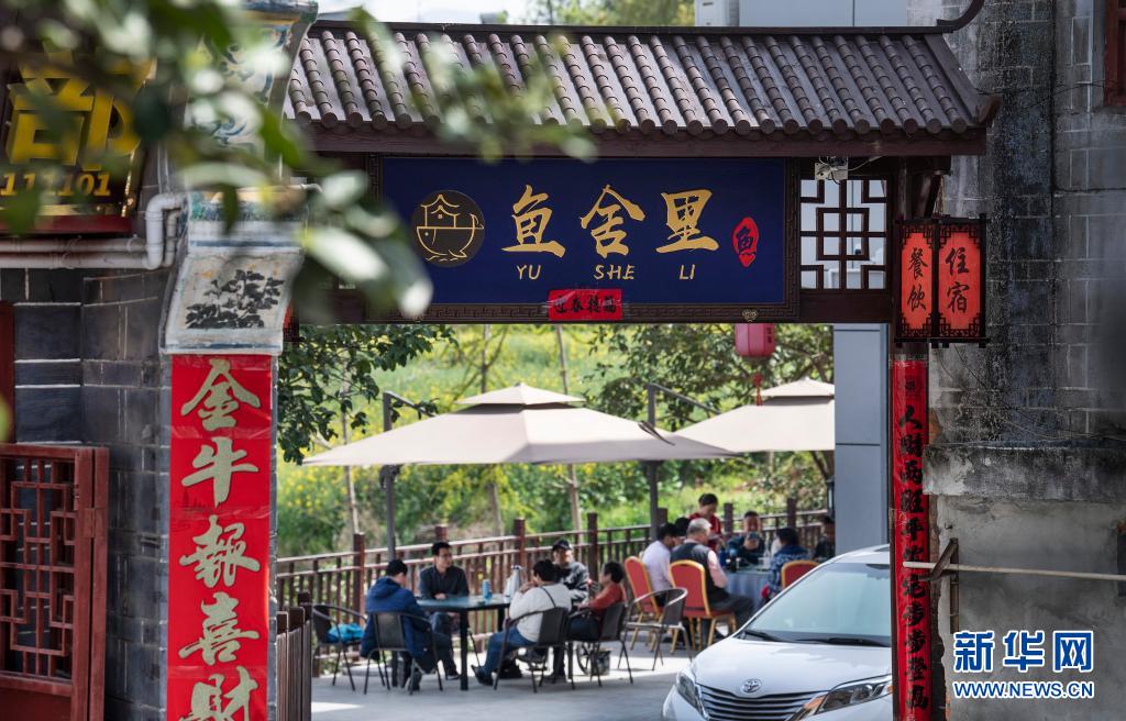 游人在流水鎮(zhèn)的古街上體驗(yàn)農(nóng)家樂(lè)(3月27日攝)。