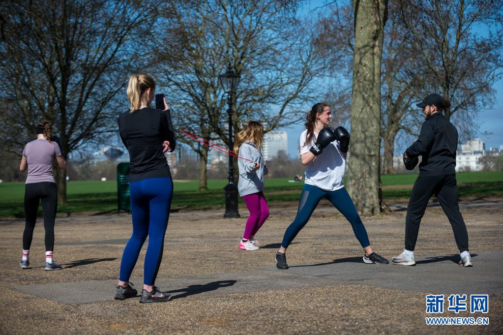 3月29日,人們在英國倫敦海德公園進行戶外拳擊練習。