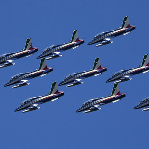 當日,意大利“三色箭”飛行表演隊在意大利首都羅馬舉行飛行表演,慶祝意大利空軍建立98周年。